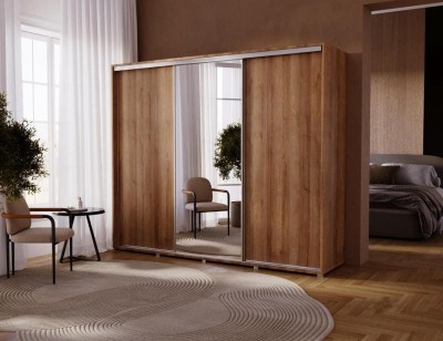 Szafa przesuwna trzydrzwiowa z lustrem, szafa do sypialni 255 cm - GOLD